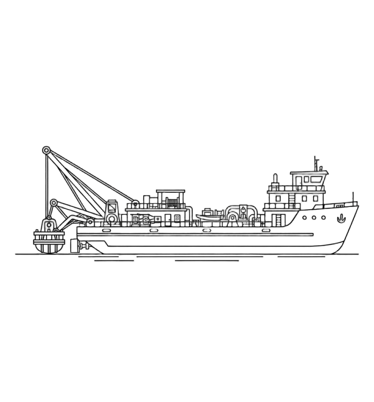 Mooring and Positioning Cables: These winch-powered cables control the vessel's positioning, including swing lines and tail lines that hold and maneuver the dredger precisely at the dredging site.