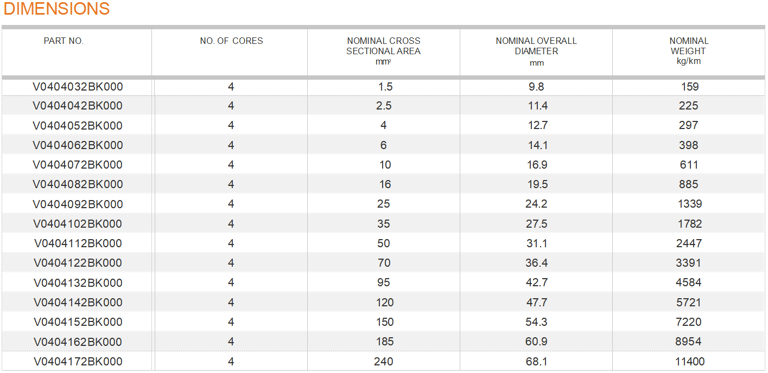 Suitable for outdoor application (direct burial not recommended), and for use on tray or in trunking.