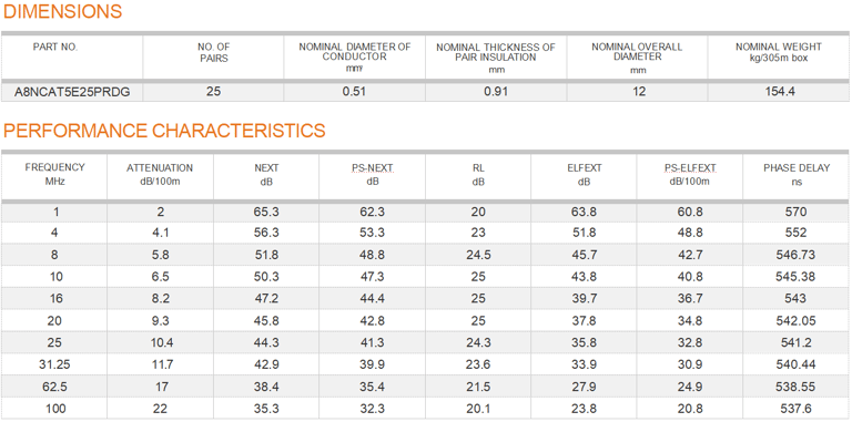 APPLICATION gh performance 25 pair backbone cable suitable for outdoor use (in a duct). It can be installed in 100Base-T, Gigabit Ethernet, 155 Mbps ATM, TP-PMD audio, multimedia and telephone networks. |