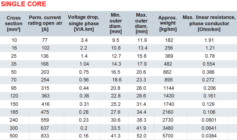 Permissible current rating is measured for an ambient temperature of 30°C and a maximum operating and conductor temperature of 60°C . For other temperature please refer to correction factors .