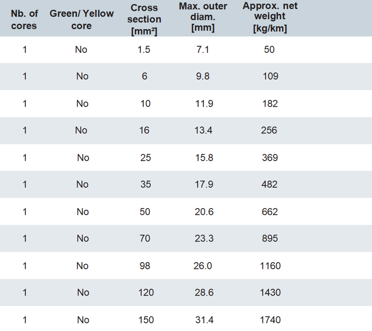 1. Conductor : Flexible bare copper, class 5.