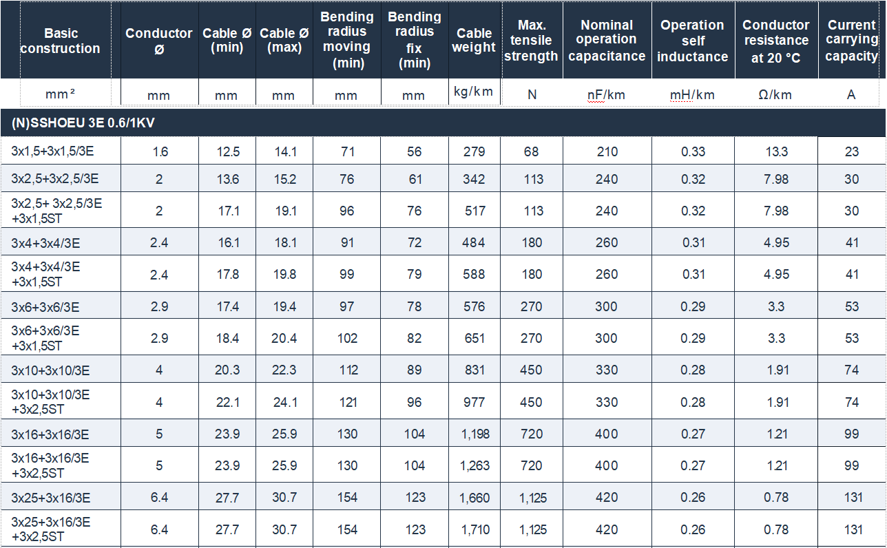 The fundamental design philosophy underlying the (N)SSHOEU 3E cable prioritizes longevity in dynamic applications. Class 5 conductor stranding provides maximum flexibility, with each conductor comprising numerous fine wire strands that can slide relative to each other during bending, distributing mechanical stress across the conductor cross-section rather than concentrating it in individual wires.