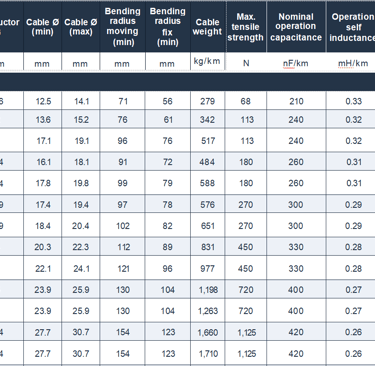 Bending radius (flexible operation): 5 times cable outer diameter