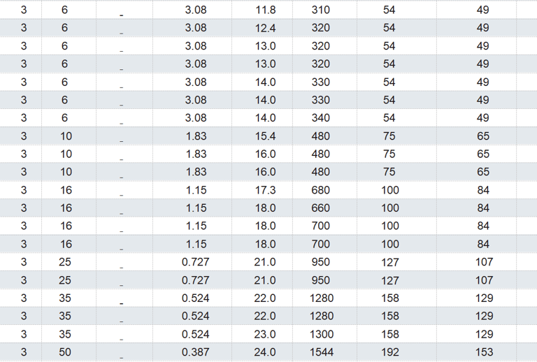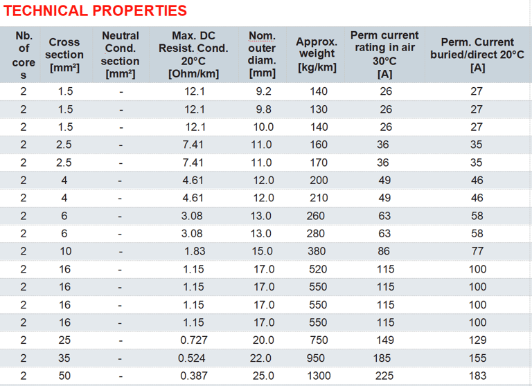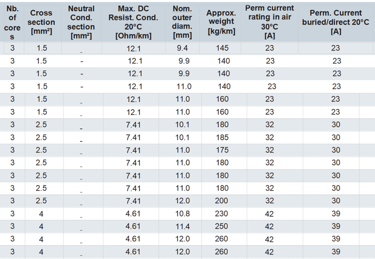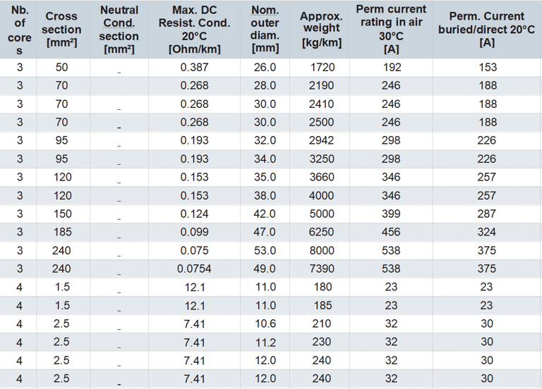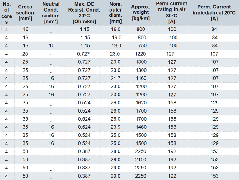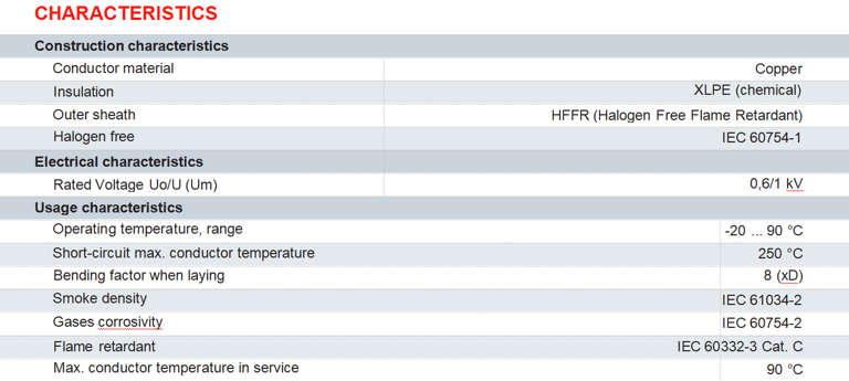 Rated Voltage Uo/U (Um) | 0,6/1 kV | |