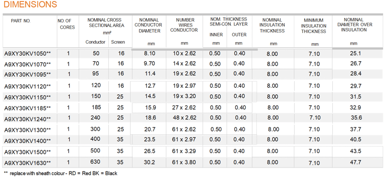 Voltage Rating Uo/U (Um) 18/30 (36)kV