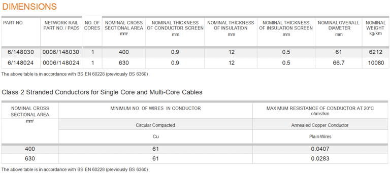 APPLICATION Cable used to distribute three phase a.c. electrical power to 25kV – 0V – 25kV autotransformer systems on AC electrified lines |
