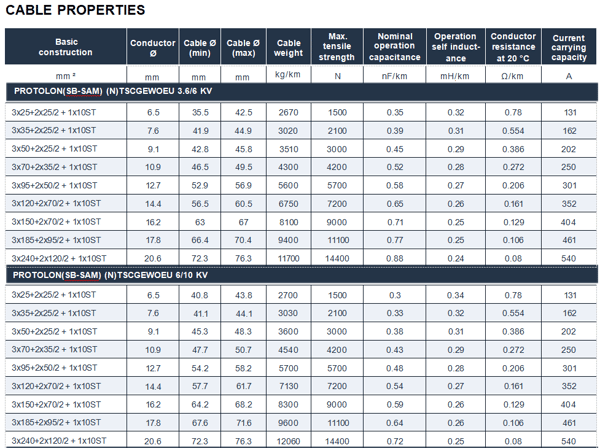PROTOLON (SB-SAM) NTSCGEWOEU Medium Voltage Trailing Cable – 6/20 kV