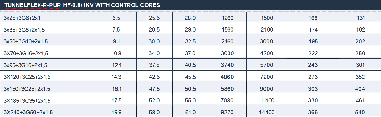 TUNNELFLEX-R-PUR HF 1 kV Antitwisting Protection Cable for High-Speed Mining & Tunneling Equipment