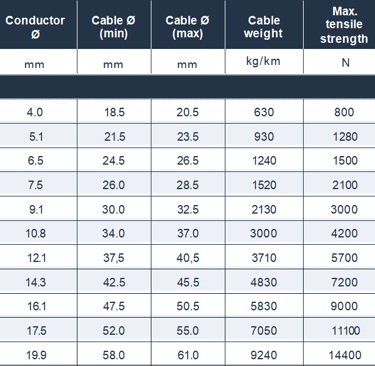 The cable construction does not rely on steel reinforcement for tensile strength, instead using the inherent strength of the copper conductors and the supporting core structure. While specific tensile strength values vary by cable size, the mechanical parameters specify that the cable can withstand the dynamic loads associated with high-speed reeling and trailing operations.