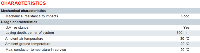 Suitable for fixed installations at open air, in tube or canals and underground. Max. Operation temperature: 90°