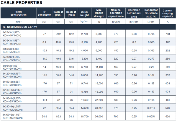 (Z) NSSHKCGEOEU cable is designed as a power supply connection cable for mobile equipment in underground mining applications, including coal shearers, roadheaders, tunnel boring machines (TBMs), and load-haul-dumps (LHDs). This cable is built specifically for free trailing operations, capable of being trailed over considerable distances behind mining machines due to its special construction, ensuring high tensile strength and durability under dynamic mechanical stress.